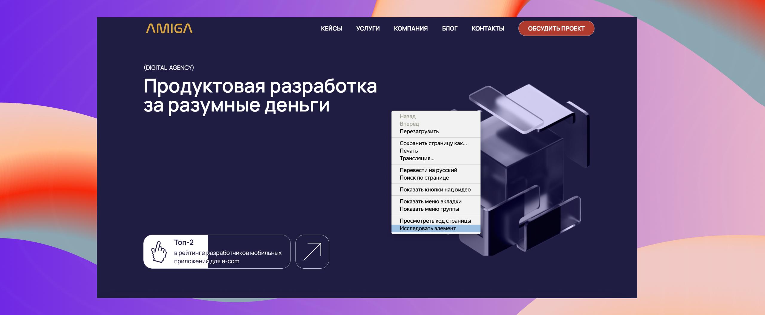 Еще один удобный способ — кликнуть правой кнопкой мыши по любому элементу на странице и выбрать пункт: