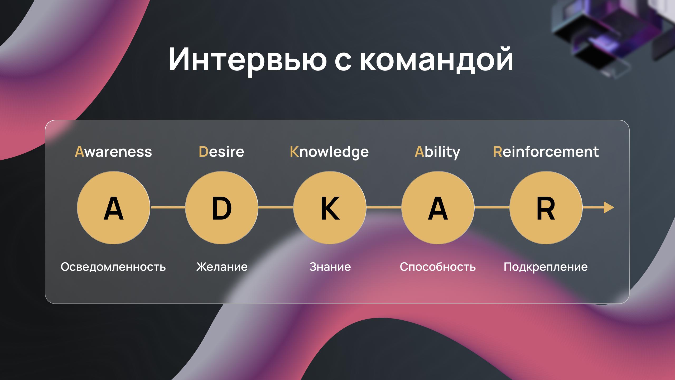 Система ADKAR — это модель управления изменениями, она состоит из пяти ключевых этапов, каждый из которых отвечает на конкретную потребность человека в процессе трансформации: