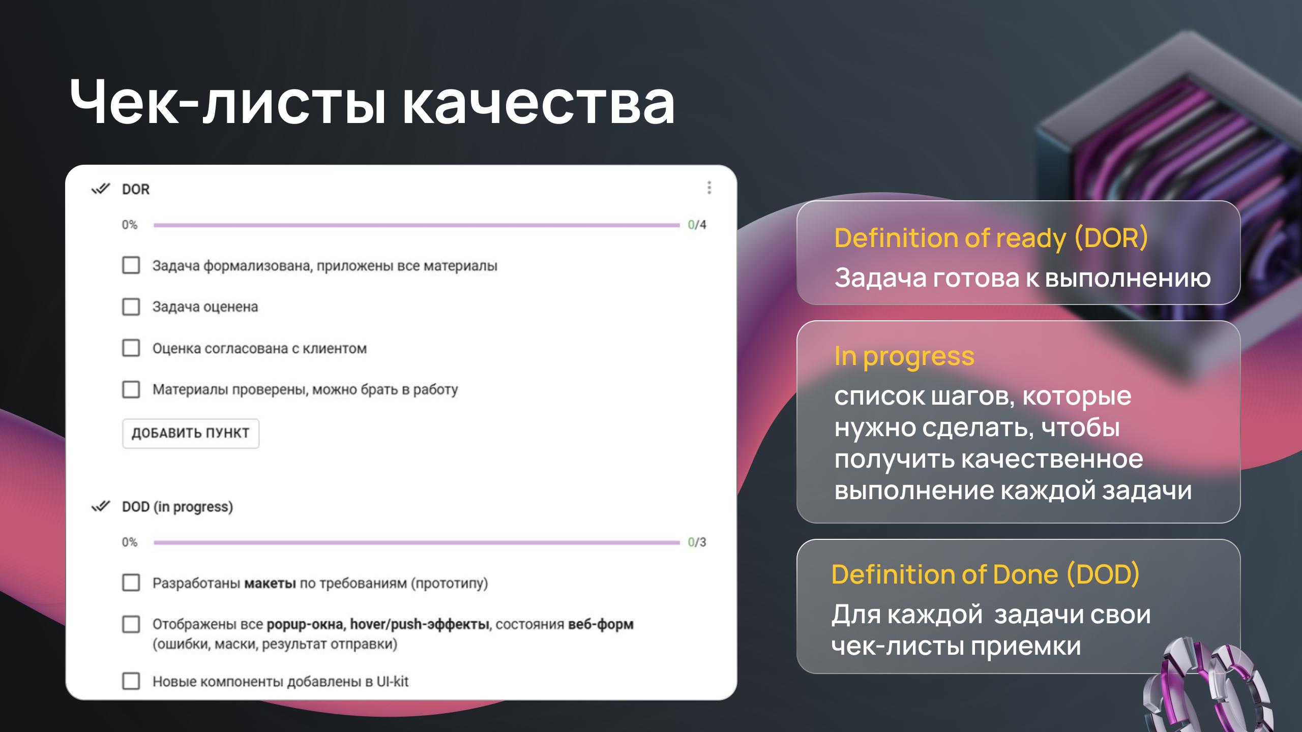 DoR (Definition of Ready) и DoD (Definition of Done) — это фильтры качества.