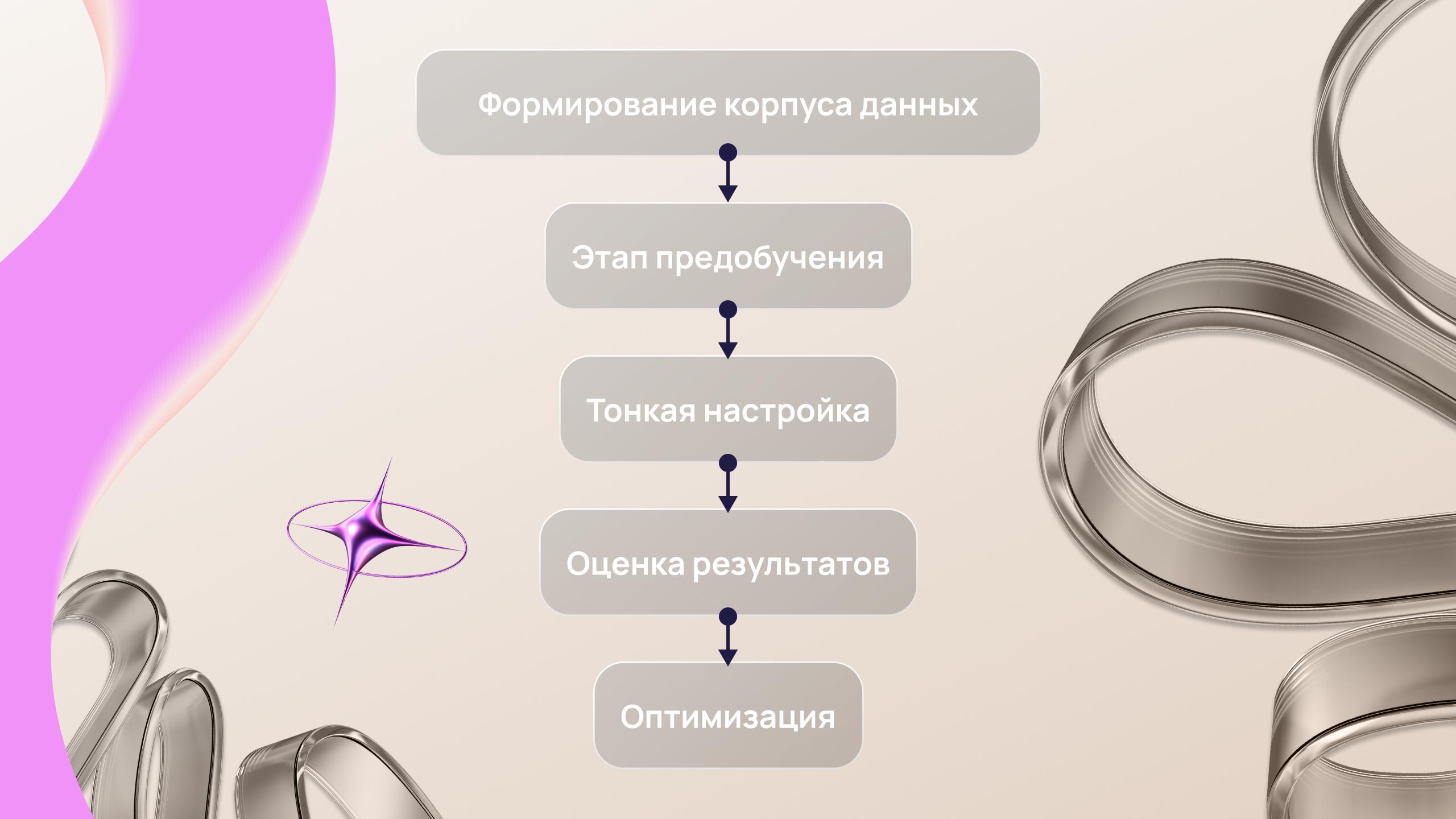 Обучение больших языковых моделей — это сложный процесс, включающий несколько ключевых этапов: